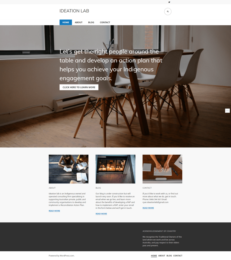 ideation lab is a boutique, Indigenous owned and run consulting business. They needed a simple, professional business website that showcased their range of services and gave prospective clients their contact details.