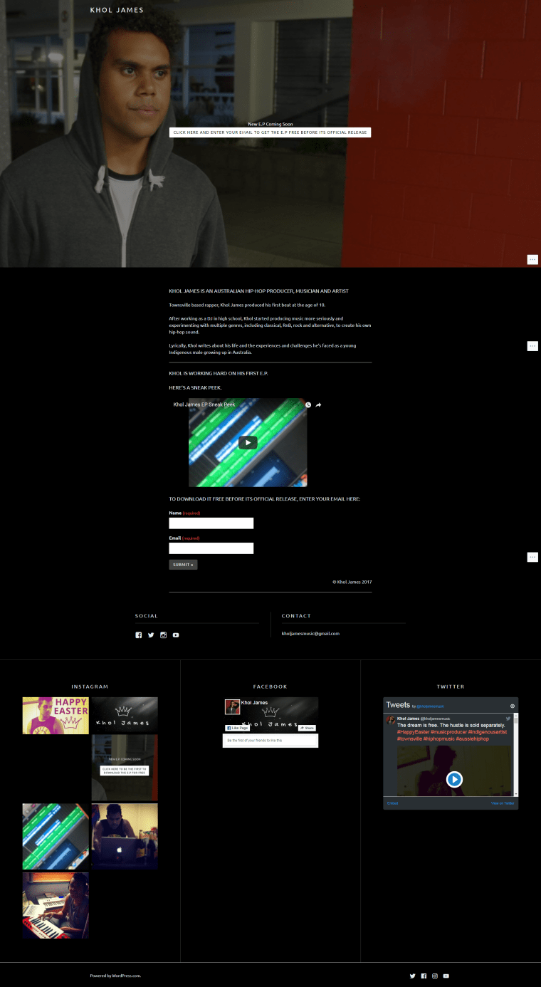 Khol James is a Townsville based DJ and Hip-Hop artist who needed a simple yet professional website to promote his upcoming E.P.