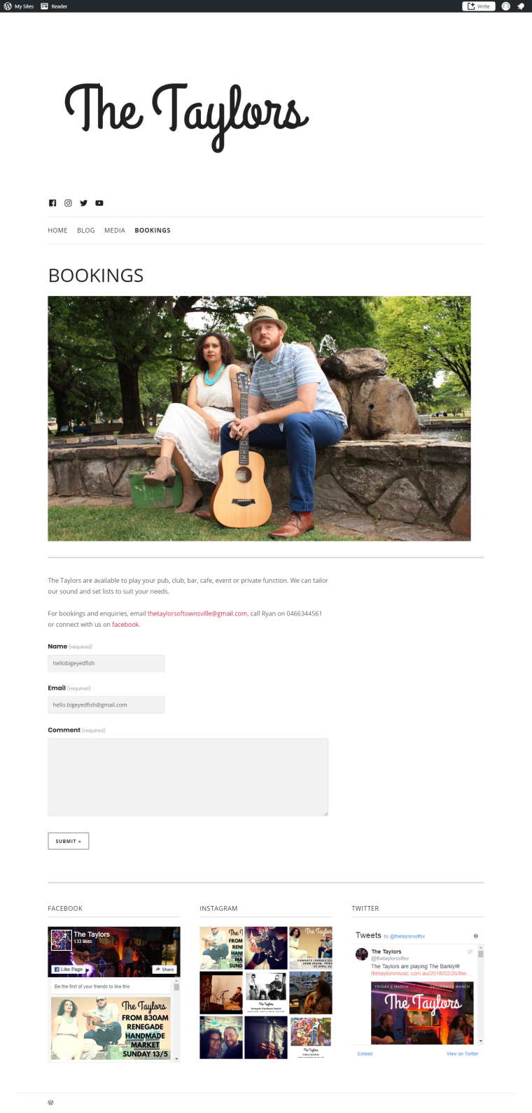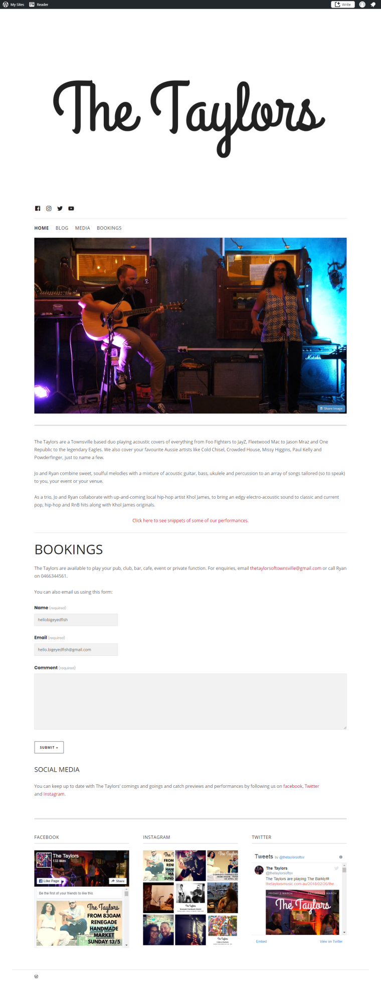 The Taylors needed a site to showcase their talent and give venues and customers a place to find contact information and make bookings.
